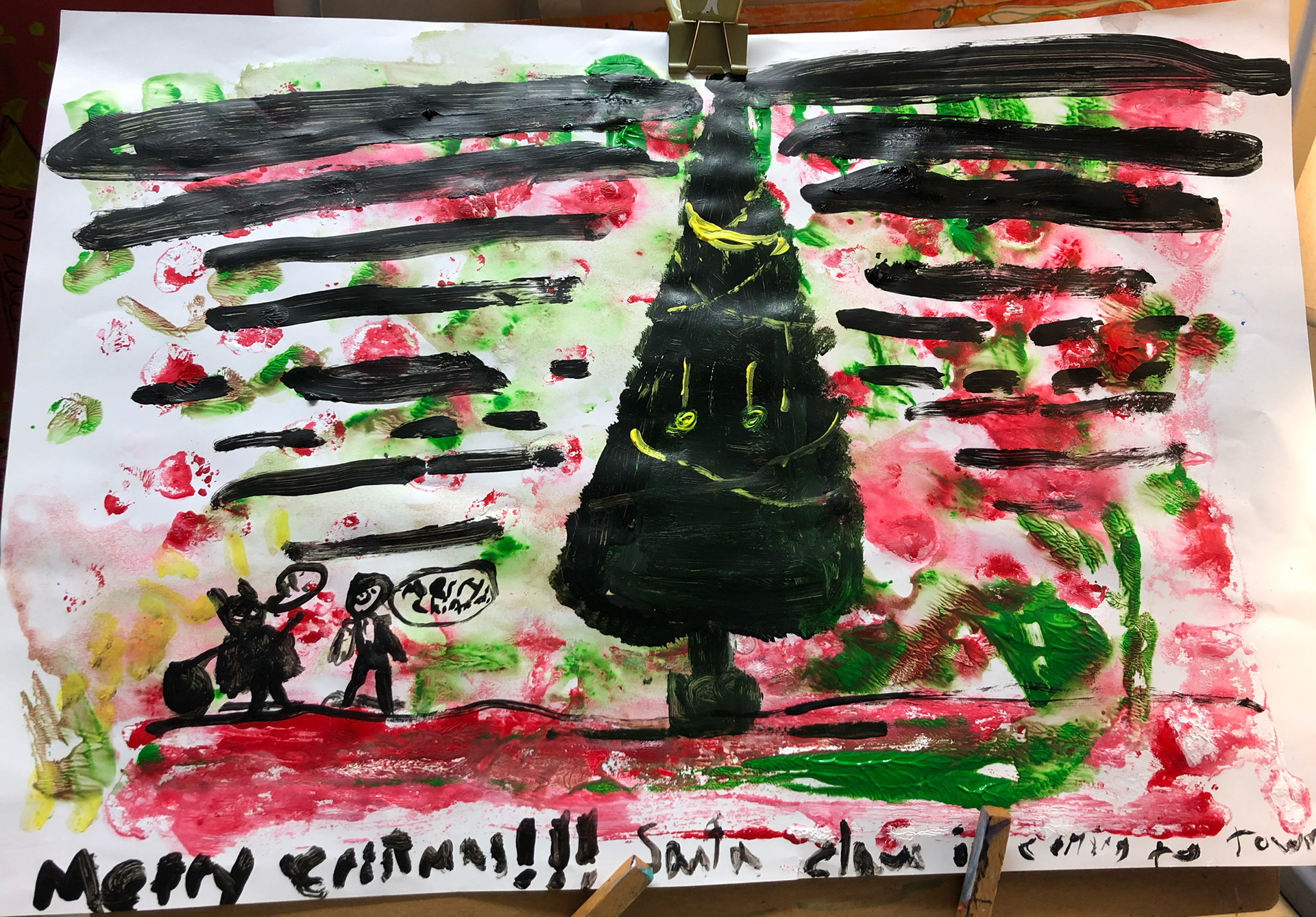 The figures are intentionally abstracted, emphasizing action, balance, and force rather than precise realism. Bold brushstrokes and layered acrylic textures create a sense of intensity and momentum, giving the piece a feeling of constant motion. The contrast between the recognizable flag symbol and the expressive, almost chaotic movement of the fighters adds tension and depth, making the artwork feel alive and charged with energy.